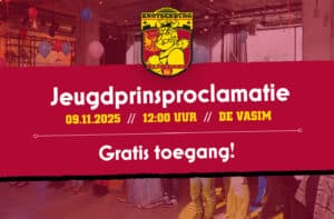 Zondag 9 november is het feest in de Vasim! Vanaf 12:00 uur barst de Jeugdprinsproclamatie los met muziek, dans, spelletjes, confetti en héél veel plezier voor jong en oud!